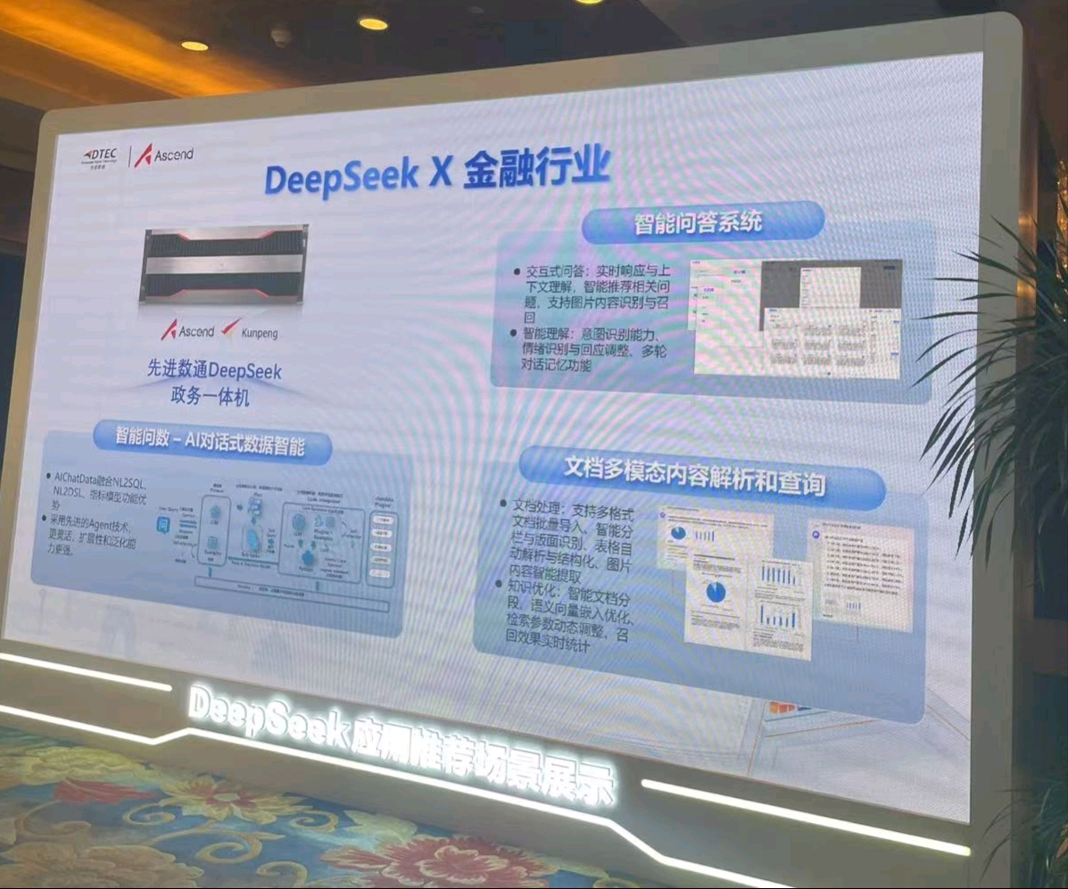 本次大会乐发lv大众 乐发welcome展示了DeepSeek一体机,向业界全方位展示了其在金融科技领域的创新实力。乐发lv大众 乐发welcomeDeepSeek一体机的文档多模态内容解析和查询功能备受瞩目。它能够对各类金融文档,如研究报告、监管文件、交易记录等进行全方位解析,将文本、图表、图像等多模态信息转化为可高效查询和分析的结构化数据。金融组织借此可快速定位关键信息、洞察市场趋势、防范合规风险,为决策给予有力支持,实现从数据到价值的高效转化。